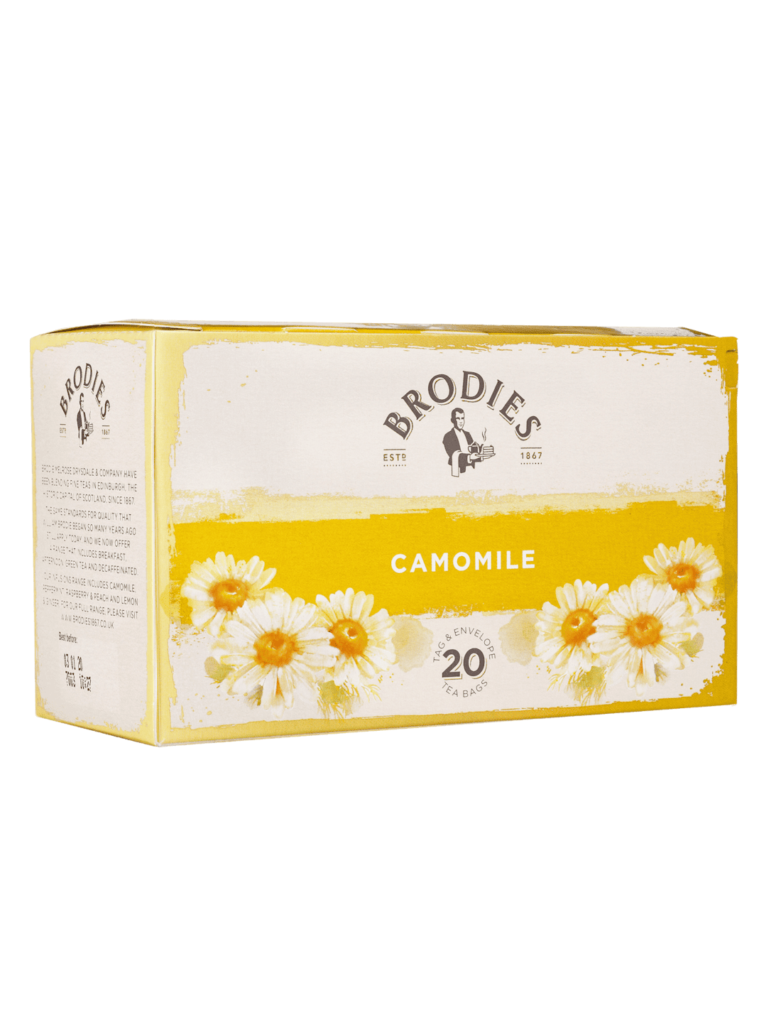 Desde há mais de 150 anos, a Brodies seleciona as melhores qualidades em folhas para criar uma ampla oferta das mais apreciadas variedades de chá e infusões. Infusão delicada e refrescante com excelentes propriedades relaxantes e calmantes.
