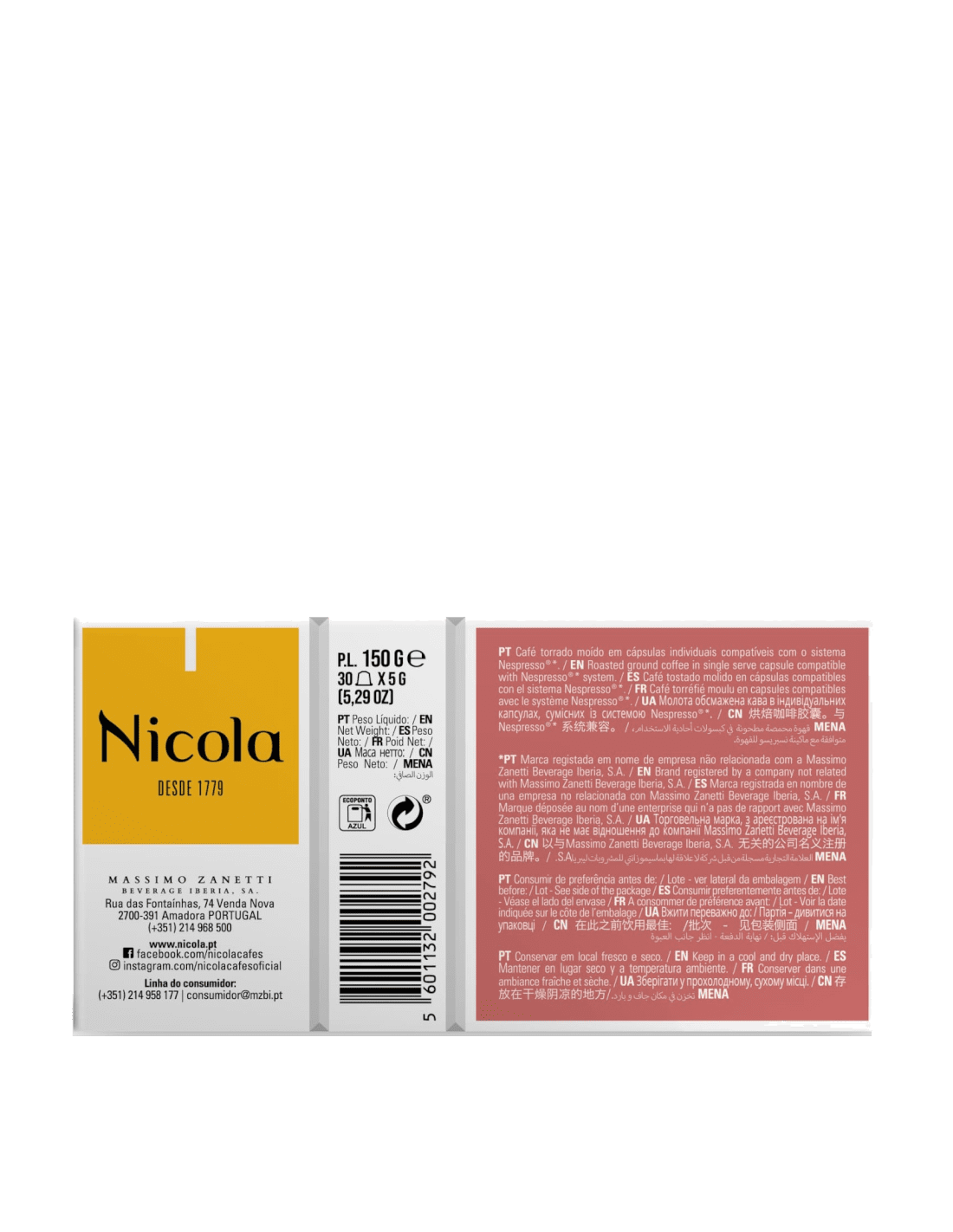 Nicola Bocage (cx30) – Cápsulas de café torrado moído compatíveis com as máquinas de uso doméstico Nespresso®*