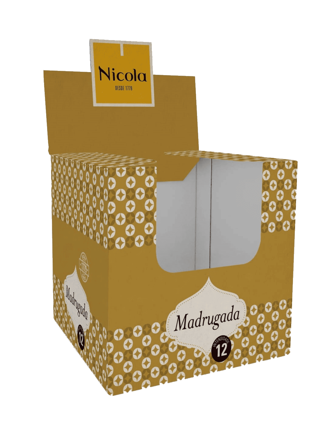 A madrugada completa-se com um café expresso onde o corpo e creme intenso resultam num blend onde predominam cafés da espécie Robusta criteriosamente selecionados – Intensidade 12