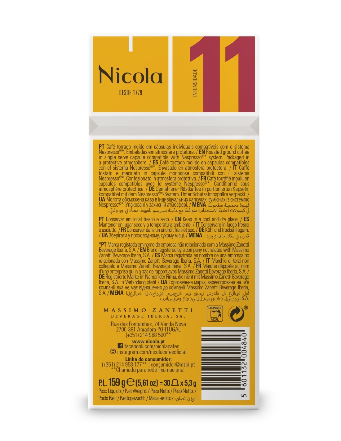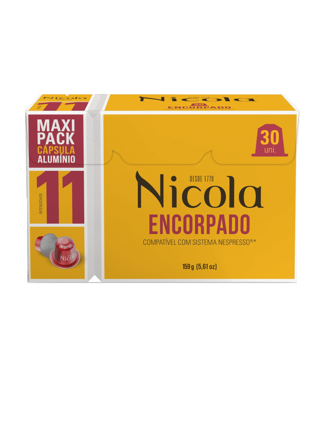 Nicola Encorpado (cx30) – Cápsulas de café torrado moído compatíveis com as máquinas de uso doméstico Nespresso®* agora em Maxi pack, de 30 cápsulas.